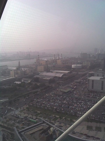 提到夢時代當然是要去坐可以眺望高雄市的Hello Kitty摩天輪啦,位於頂樓的摩天輪有36個車廂,轉一圈大概是十多分鐘,一張票是150學生票八折,算算還ok。當天是年假人還蠻多的,在帳篷裡轉了好多圈,排了一小時多才終於輪到,這還要感激周末有很多家庭來排隊呢,所以可以一個車廂塞四個人以上就能輪很快喔^^。摩天輪的一側可以看到高雄的港區,當天天色灰濛濛的什麼都看不太清楚,但晚上往另一側看市區的夜景應該會更不錯吧。